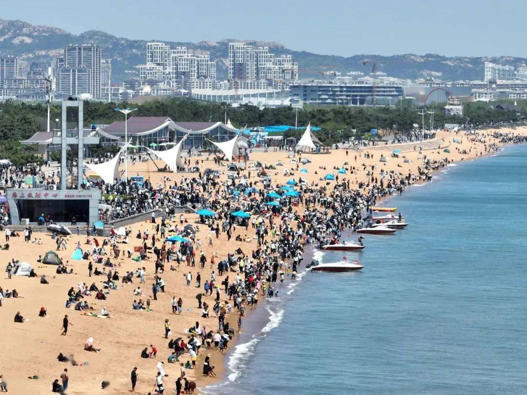 在多岛海景区,沙滩露营、赶海拾贝、浪花嬉戏……多种多样的娱乐方式引得游客络绎不绝,游人如织。据统计,假期期间,该景区的日访客量超过3万人次。