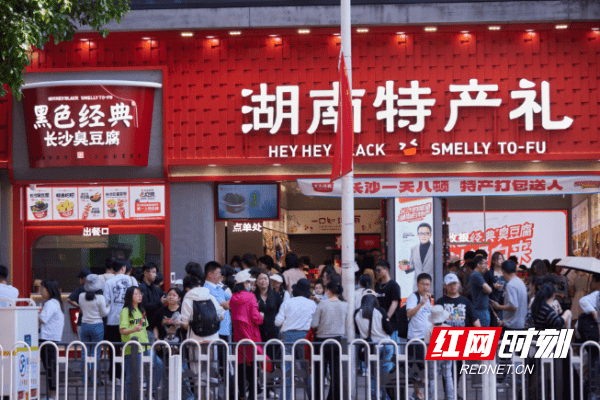 如果说去淄博,是为了“进淄赶烤”,那么在美食百花齐放的长沙,臭豆腐称得上是其中一张具有代表性美食名片。五一期间黑色经典24家直营门店火力全开,各店油炸区前的队伍还是从早排到晚。