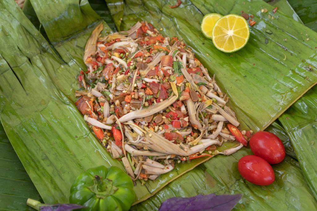 包烧是傣族特殊的一种烹饪方法,采用天然的芭蕉叶为烹饪工具,味道鲜纯,香中带辣,十分美味。图/视觉中国(编辑:金浩然)