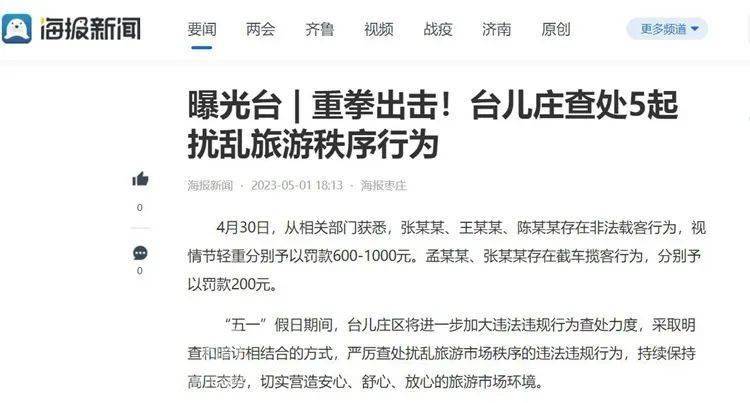 遇到问题不是尝试掩盖,而是公开查处。看似暴露了问题,但实际上展示了政府维护旅游市场环境的决心,这恰恰为游客吃下了定心丸,增强了游客来枣庄旅游的信心。