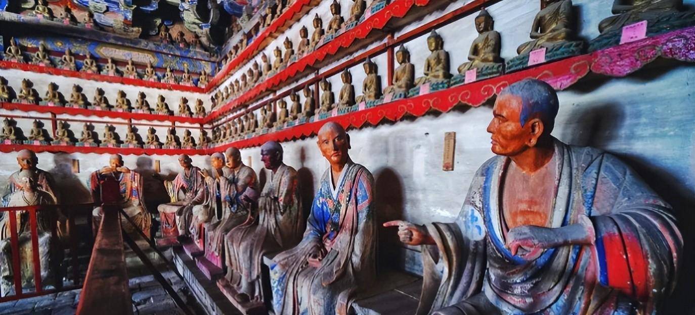 殿中最吸引人眼球的还当属围坐着在四周的40尊彩色泥塑罗汉,他们神态各异,形象传神,喜怒哀乐,栩栩如生,被誉为"海内第一名塑"。艺术大师刘海粟留下"灵岩泥塑,天下第一,有血有肉,活灵活现"的赞语。