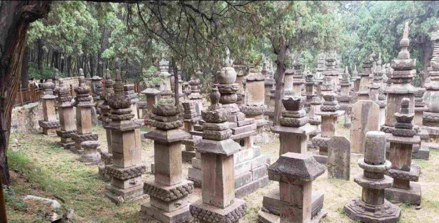 墓塔林,位于千佛殿西南0.5公里,有唐宋至明清各代灵岩寺住持僧的墓塔167座(唐代1座、北宋6座、金代5座、清代3座,其余为元明遗物),墓志铭、石碑81通。这些墓塔和志铭,反映着不同历史时期的雕刻特征,寺宇史实。墓塔的形制多样,造型古朴、雕工精细。一般墓塔均由塔座、塔身、塔刹组成。塔座多呈方形或圆形,雕刻成莲瓣式金刚、力士顶托,多至数层,有的做成须弥座式。塔身一般较高大,有圆形、长方形、钟形等,每个上面皆刻师僧之名和年号。塔顶一般呈长方形,雕刻着莲华瓣的复钵和圆形相轮,上置宝瓶或相轮式宝尖。墓塔林是一座积淀丰厚的古代石刻艺术博物馆,对研究佛教史及雕刻史,都是很珍贵的历史资料。像这样保存完好,造型精美的塔林,在我们极少,堪称一绝。