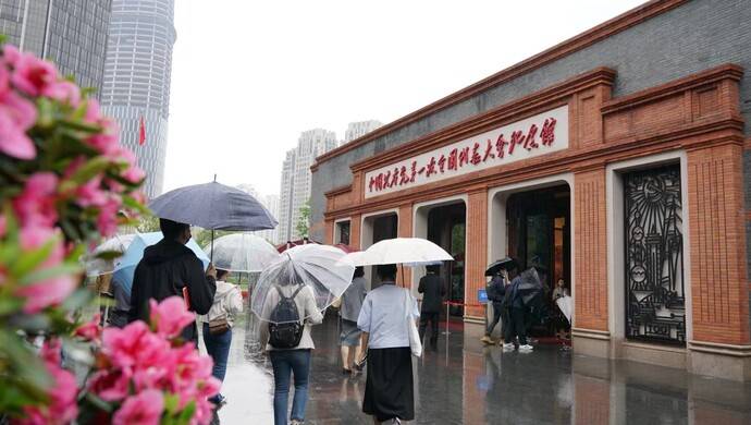 5月5日一早,暴雨如注,但中共一大纪念馆门前,仍排满从四面八方赶来的游客。