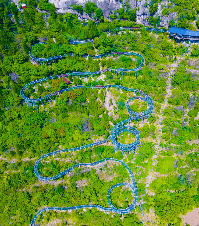 没什么能够阻挡,一名游客对漂流的向往!全长2000米,从百米高空俯冲而下,此起彼伏的尖叫声中,只能感受到畅快的呐喊~穿梭林间的彩色列车,冲入青铜山的童话世界!
