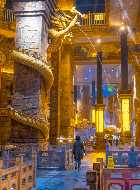 别有洞天,形容这座山东首家龙文化主题宫殿非常恰当。进入大门的一瞬间,氤氲的水汽就能让你想到避暑胜地,而精美的雕刻,美轮美奂的场景建造,让你忍不住直呼神奇!
