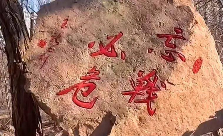 而在太平山暗堡的不远处,有一块巨大的石头卡在树木的中间,只见上面写着四个大字:忘战必危