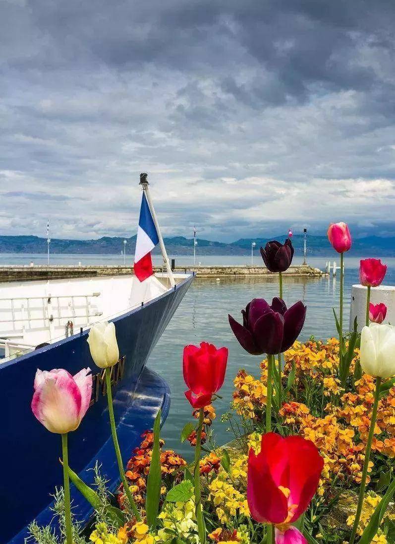 日内瓦湖(法方称莱芒湖)像是一块月牙形的碧玉镶嵌在阿尔卑斯山脚下,湖的另一头是瑞士名城洛桑,而湖的这边则是悠然与宁静、被称为“日内瓦湖之珠”的小镇~依云。