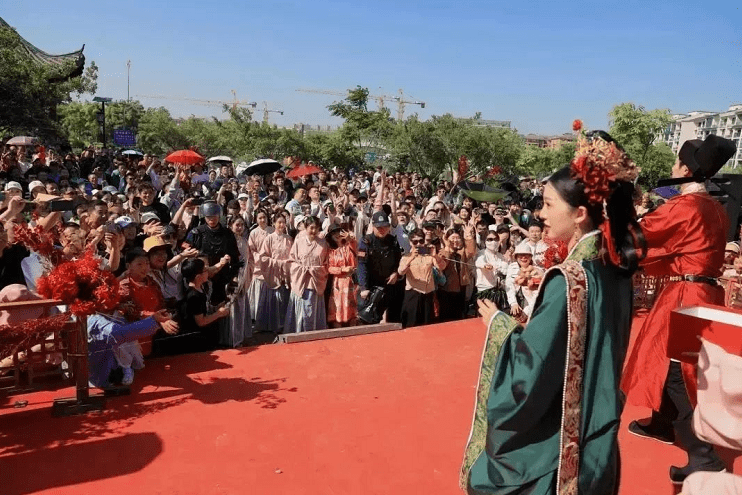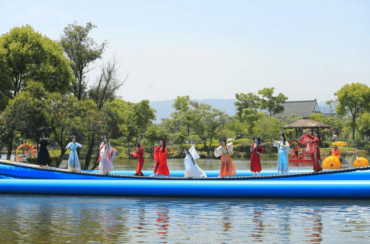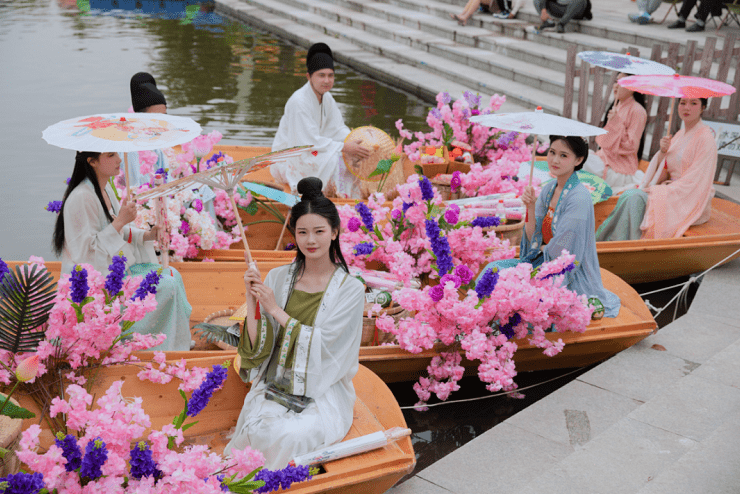4月29日,“诗画水乡 宋韵万全”平阳县万全镇宋韵文化旅游节在万全镇周垟村开幕,”活动包括宋韵婚礼、水上市集、非遗街区、水上乐园四大板块,活动邀请了本地非遗传承人、杂耍团队、“金庸笔下女侠”等团队共同参与,成功打造城市文旅消费新平台,呈现城市历史文化新魅力。