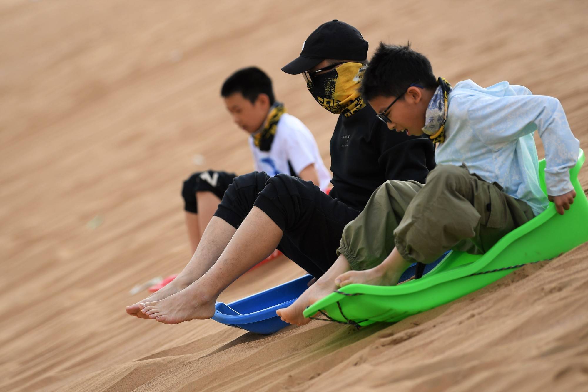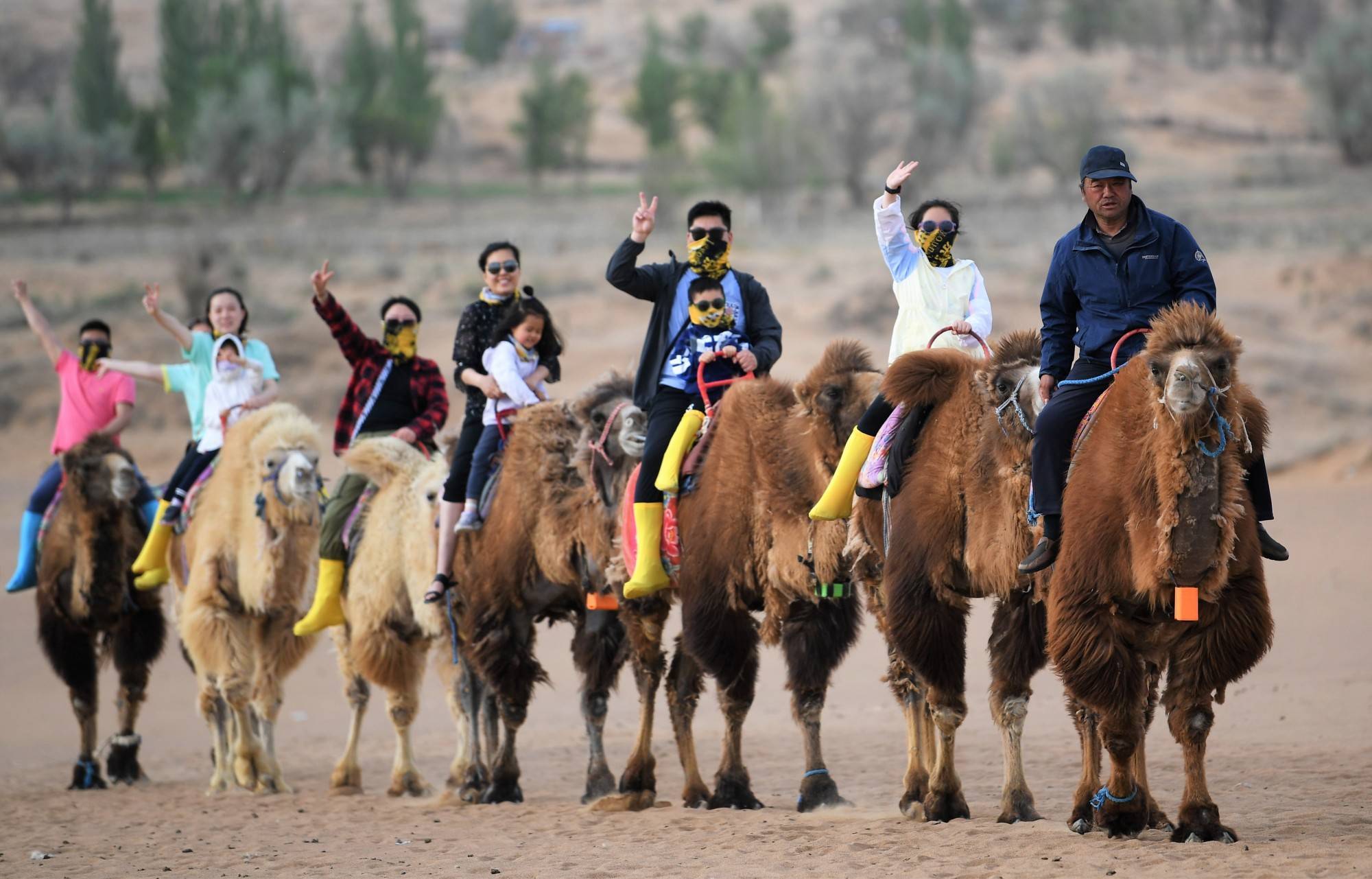 5月4日,游客在阿拉善盟孪井滩生态移民示范区体验骑行骆驼。今年“五一”假期,阿拉善盟孪井滩生态移民示范区迎来旅游旺季,期间共接待游客9.67万人次,实现旅游综合收入5513万元,游客主要来自北上广、珠三角等地,创下新的旅游接待纪录。