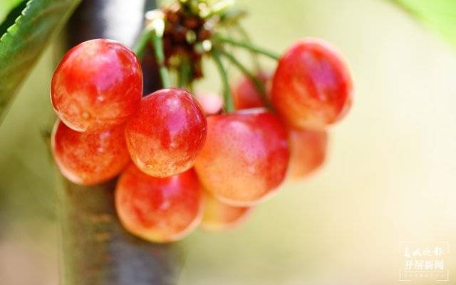 眼下,位于昆明市官渡区大板桥街道花箐社区严家庄的6000多株车厘子已进入采摘期。5月5日上午,春城晚报-开屏新闻记者来到该车厘子种植地,一颗颗成熟的车厘子挂满了枝头。