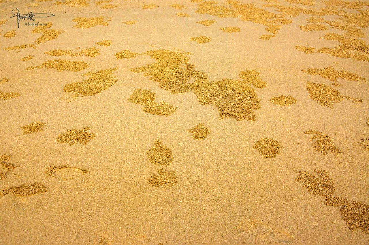 相信没有长住在海边的游客看到如此景象,都会觉得非常震撼吧,因为整个“七号沙滩”堪称广袤无垠的靠近大海的地方,几乎全是蟹洞和沙球。当然,也可能是因为面积大游客少,才导致它们不会被反复踩踏,把这种原生态的风景保留得如此完好。(图文作者:阿陆,喜欢这篇文章的朋友可以多多留言,欢迎点赞、关注和转发。)
