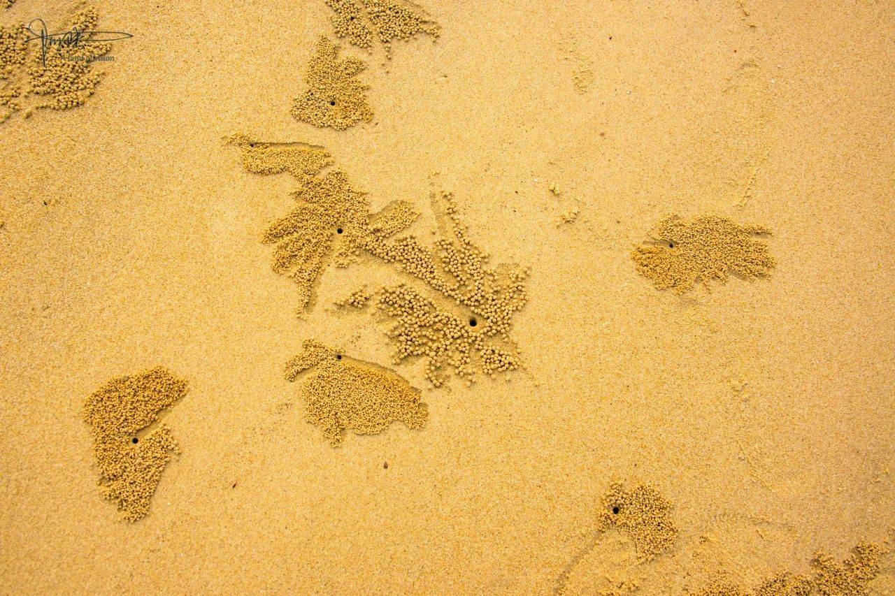 当我刚注意到沙滩上这种“遍地开花”的壮观景象,起初心里还有点忐忑,不敢确定是什么奇妙的自然现象。后来连续询问了几位游客和路过的当地渔民,才得到正确答案,原来这些都是“沙蟹”们的杰作。