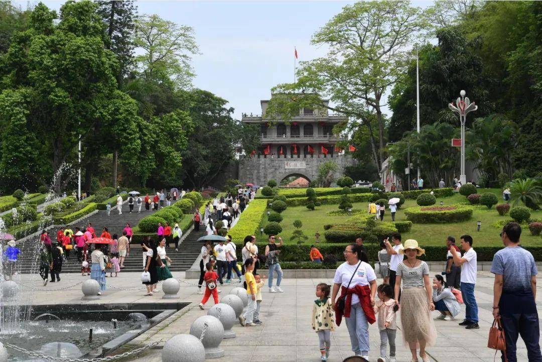 5月1日上午,记者看到源源不断的游客进入到凭祥市友谊关景区,虽然天气逐渐炎热,但仍旧阻挡不住游客们高涨的游玩热情。在景区内,来往的游客们或是三两好友结伴而行,或是一家老小亲子游,他们有的在友谊关下边参观边拍照留念,游览军事历史建筑;有的在喷池广场上观赏美景,感受边关风情。