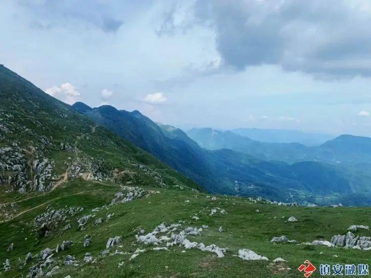 好景还在后头呢。向导已经上到对面的山顶上,怕我们迷路,不停地喊一声。登上山顶才发现,北阳山上无树无花,整个山形类似高原景象,心里顿生怀疑:确定是在镇安而不是在云南石林或者哪个高原?