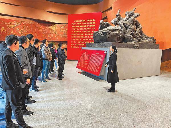 在红旗渠纪念馆,一群年轻游客格外引人注意,他们边参观边在笔记本上作记录。