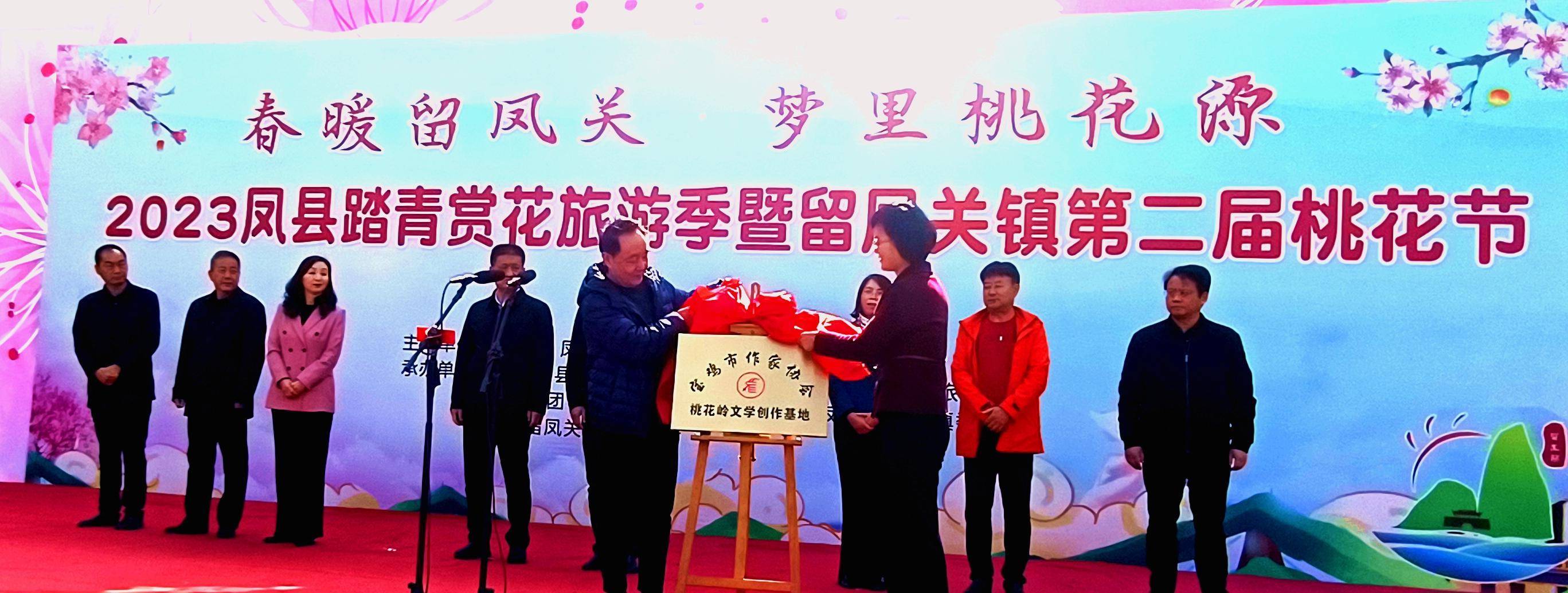 宝鸡市作协领导李广汉和凤县县委领导、宣传部长宁亚莹为市作协桃花岭文学创作基地揭牌。