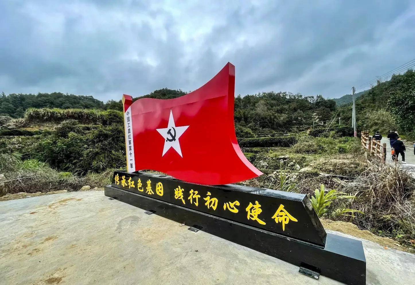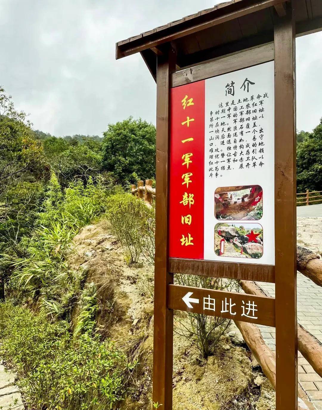 从村里步行到后山,再登山20分钟,来到离村2公里的红十一军军部旧址。