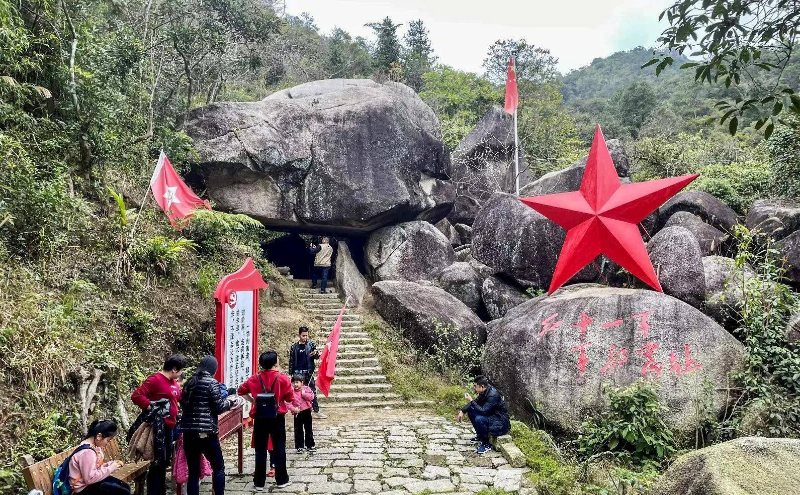 山上树林茂密,岩石成洞。走进以天然巨石覆盖而成洞室的军部旧址,占地面积1200平方米,洞高约3米,虽并不宽敞,但后面有出口直达山顶,进退自如,当年红军和赤卫队进行革命斗争的指挥中心,如今还保存完好,是世田爱国主义教育基地的组成部分。