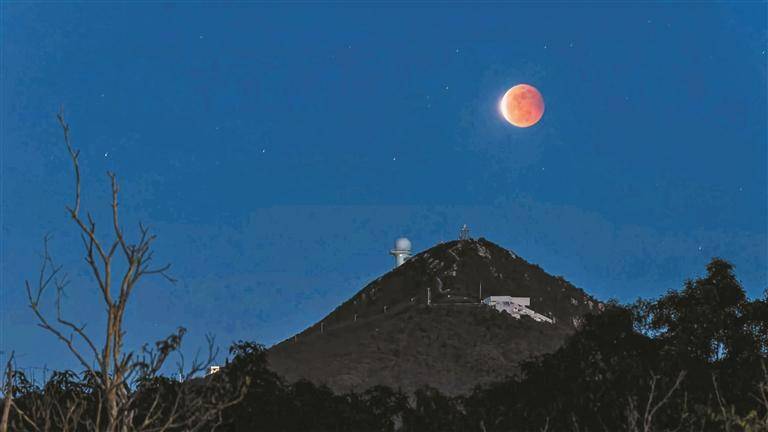月全食下的深圳市天文台。深圳市天文台供图