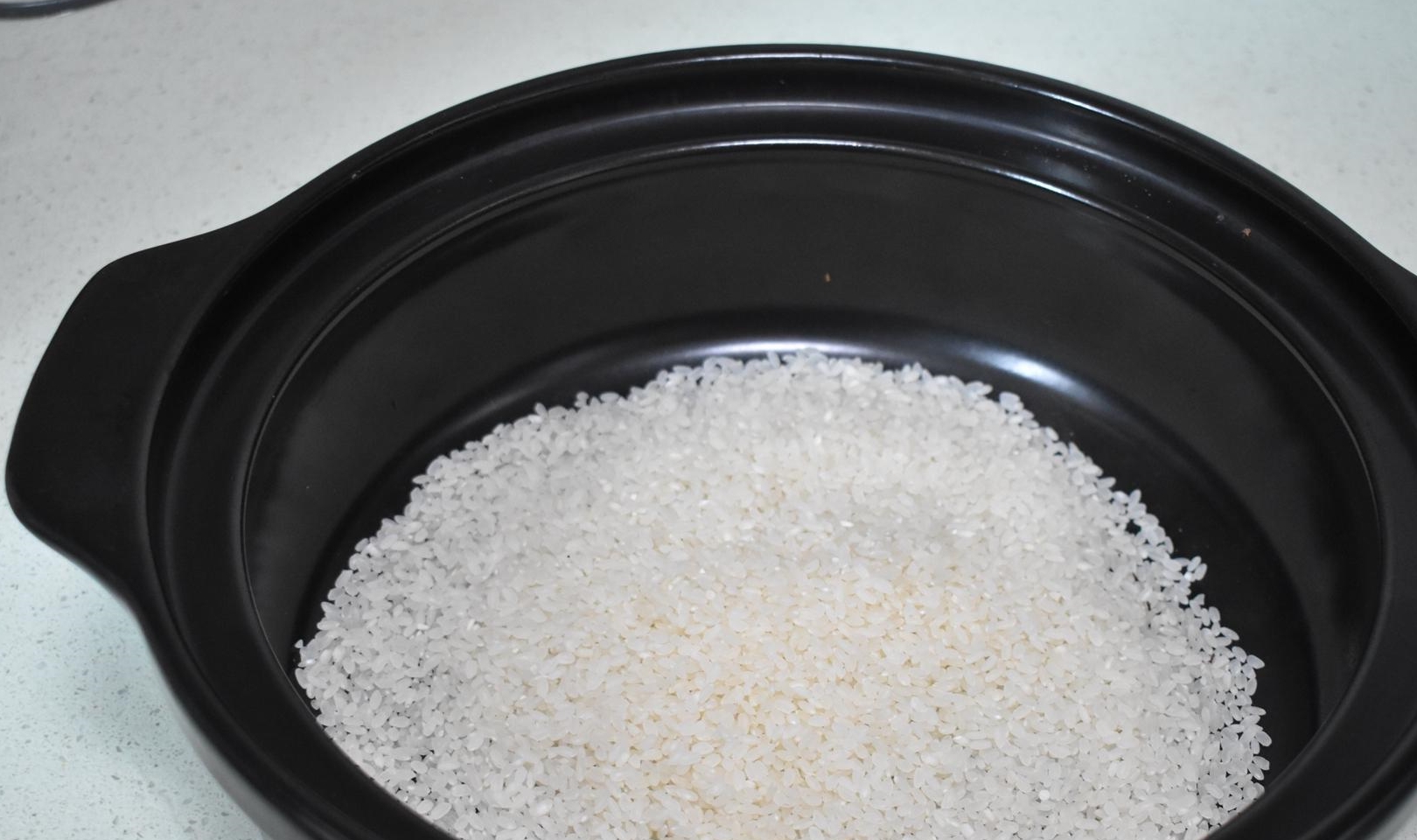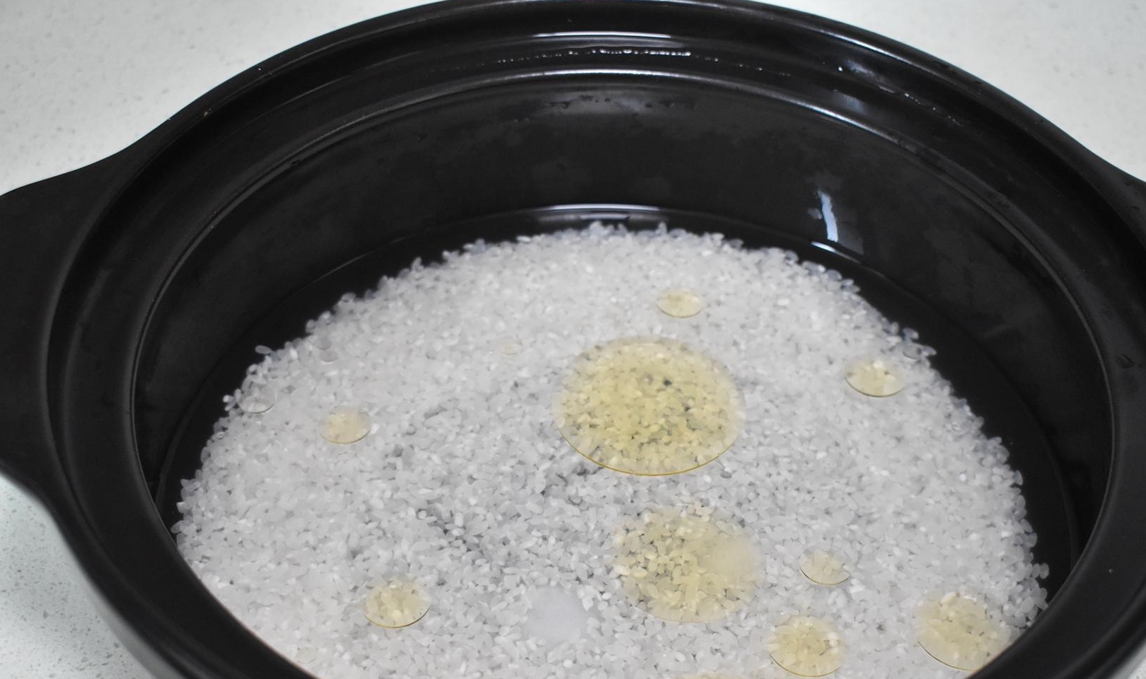 第一步大米清洗干净,用水浸泡着,大米和水按照1:1.5的比例。我会在上班前洗好大米,大米和水放入砂锅浸泡。