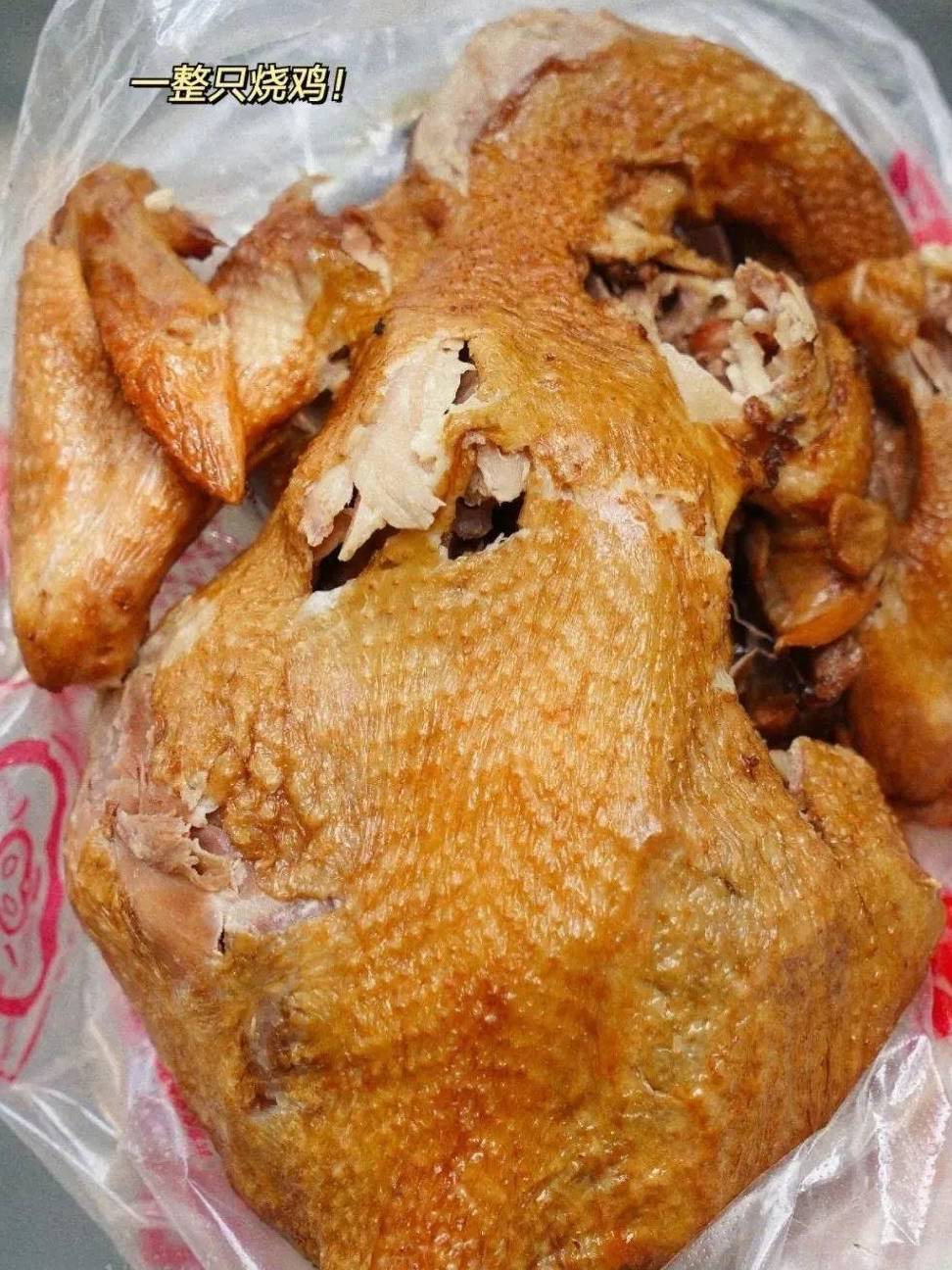 烧鸡是必吃,只卖一整只。鸡腿轻轻一掰就下来了,肉和皮要一起吃,这样才是烧鸡的灵魂~