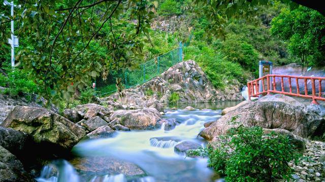 走进景区之内,大家就可以感受到一种浓郁的自然风情,高耸的山脉之上,遍布着层层绿植,它们犹如一张绿的巨毯,把山脉覆盖在了其中,而在丛山峻岭之中,隐约还能听到铲铲的流水声,这些流水声其实发自于山间一条清澈的小溪,这条小溪由山泉水汇聚而成,从高到低缓缓流淌,不仅给景区带来了生命的源泉,同时也给景区带来了许多的奇妙之处。