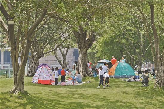 5月4日,广州市林业和园林局在官网挂网公示关于公开征求《广州市公园绿地开放共享区域名单》(以下简称《名单》)意见的公告。根据《名单》所示,公园绿地草坪分为可搭帐篷开放共享区域和可开展其他活动区域,其中,广州有73个公园绿地草坪可供市民搭建中小型家用帐篷,有29个公园绿地草坪只可铺设野餐垫,开展休闲、游憩等户外活动。