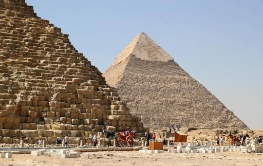 5月1日,游客在埃及吉萨金字塔群景区游览。新华社记者隋先凯摄