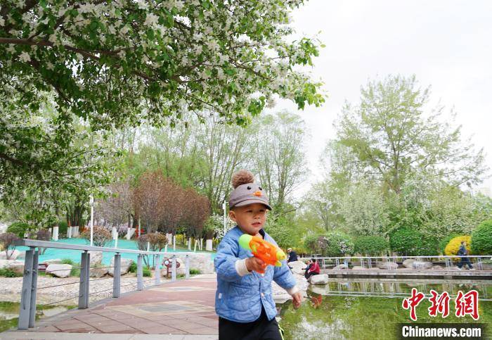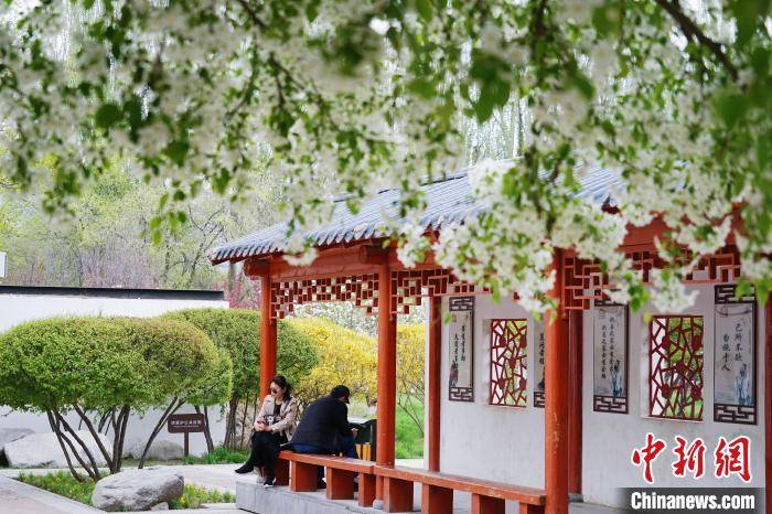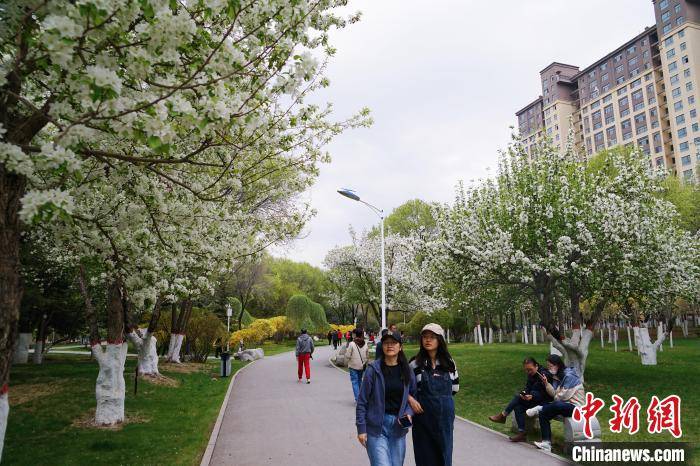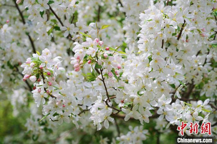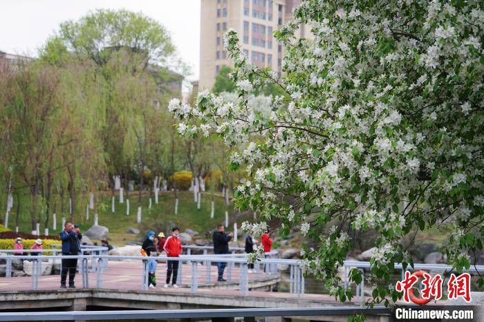 近日,随着气温逐步升高,西宁市海棠公园内,西府海棠、花红海棠、北美海棠等11个品种400余株海棠树竞相绽放。雪白的花簇和绿色的草地相映成趣,吸引游客踏春赏景,品闻花香。