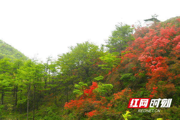 红网时刻新闻5月4日讯(通讯员 何雯 唐文峰)连日来,海拔1500多米高的新邵龙山国家森林公园,映山红渐次开放,只见漫山遍野的红杜鹃热热闹闹地盛开着,无拘无束,如霞似火。随着连绵的山峦起伏逶迤,既像红浪翻腾,又似赤带挥舞,在蓝天、绿树和白色风车的映衬下,蔚为壮观,美不胜收。上山赏花的游人与摄影爱好者络绎不绝。据龙山国家森林公园管理处负责人介绍, “五·一”假期,每天前往龙山游玩打卡的游客达一两千之众。