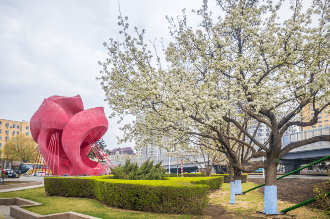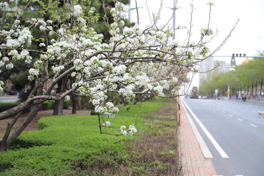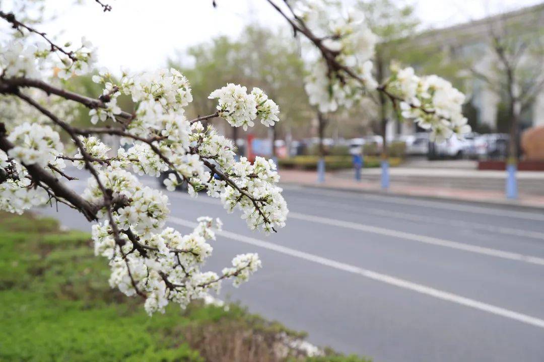 与杏花、桃花等春花呈现淡粉色或者粉红色不同,李子树花朵洁白无瑕,远远望去,像雪花一样挂满枝头,李子花的外形也与冰城的冰雪气质特别搭。除了李子树,三合路还种植着连翘、山杏、榆叶梅、丁香等多种春花树木。从四月份中旬一直到夏天,这些树木植株梯次开花,形成了春花接力不落幕的美景。可以说,三合路将哈尔滨四季分明、春花夏花接力绽放的城市园林特色,体现得淋漓尽致。此外,在距离三合路不远的三大动力路(母亲广场附近),同样洁白无瑕的山梨花也挂满了枝头,这条街上有150株山梨树,是欣赏山梨花的好去处。