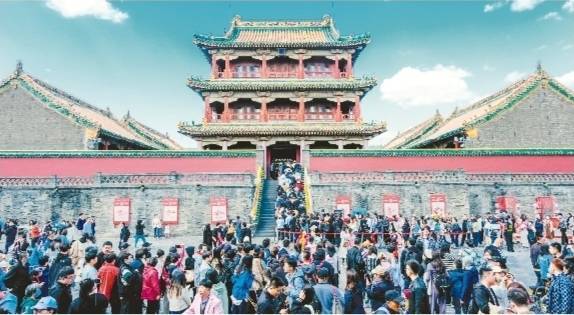 ▶游客在沈阳故宫凤凰楼前排队,有序参观。 本报记者 查金辉 摄
