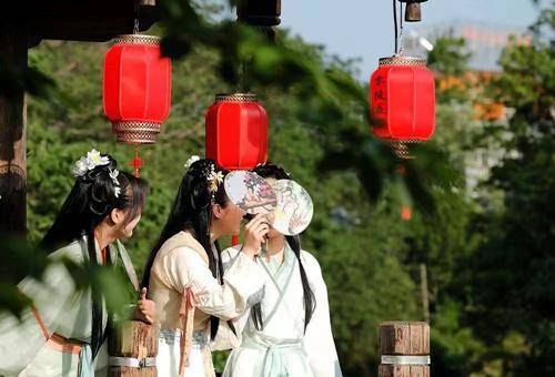 窃窃私语的古装美女,品味着愚溪河畔前世今生的故事。受访单位供图