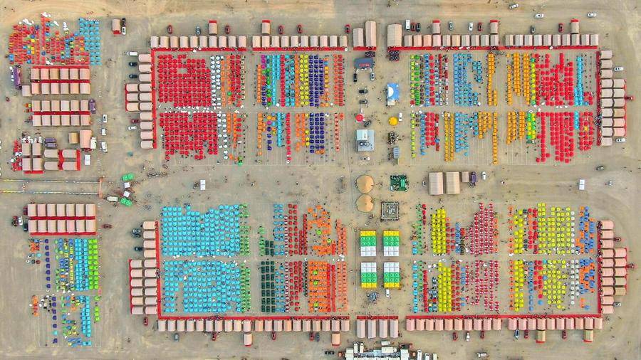 戈赛开幕前夕,十八架满载物资的跨越速运专机,一路长途跋涉,落地于敦煌,继而由货车转接,奔向戈壁深处。从保障生命供给的食物、水,到遮蔽风沙的帐篷、集装箱,还有承载现代生活方式的发电、用电设备,共同搭建起驻扎在路线中的现代化营地,为众多戈友放下忧虑、全身心沉浸于戈壁风光与脚下之路,提供了足以安心的后备服务。