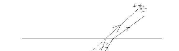 最后的结果就是物体的光线向上折射,进入眼睛。这时,我们眼睛看到的虚像较低。这就是所谓的