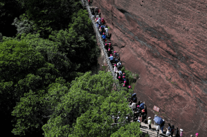 5月1日,游客在江西省上饶市弋阳县龟峰景区游玩。“五一”假期,龟峰景区推出“缤纷五月天,悦享人间季”活动,国潮变装、亲子手绘、奇幻夜游等一系列主题活动,吸引不少市民和游客前来打卡。周静 摄