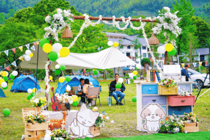 为让游客“留下来”,让旅途更“有戏”, “五一”小长假期间,江西明月山景区结合旅游消费新热点、新需求,推出露营及亲子萌宠主题活动,吸引大批游客前来享受快乐假期。梁欣露 摄
