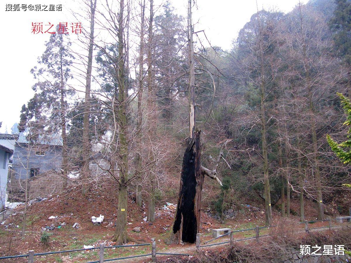 烧毁的柳杉树,现在仅存树壳坚挺,成为了梨洲村一景。
