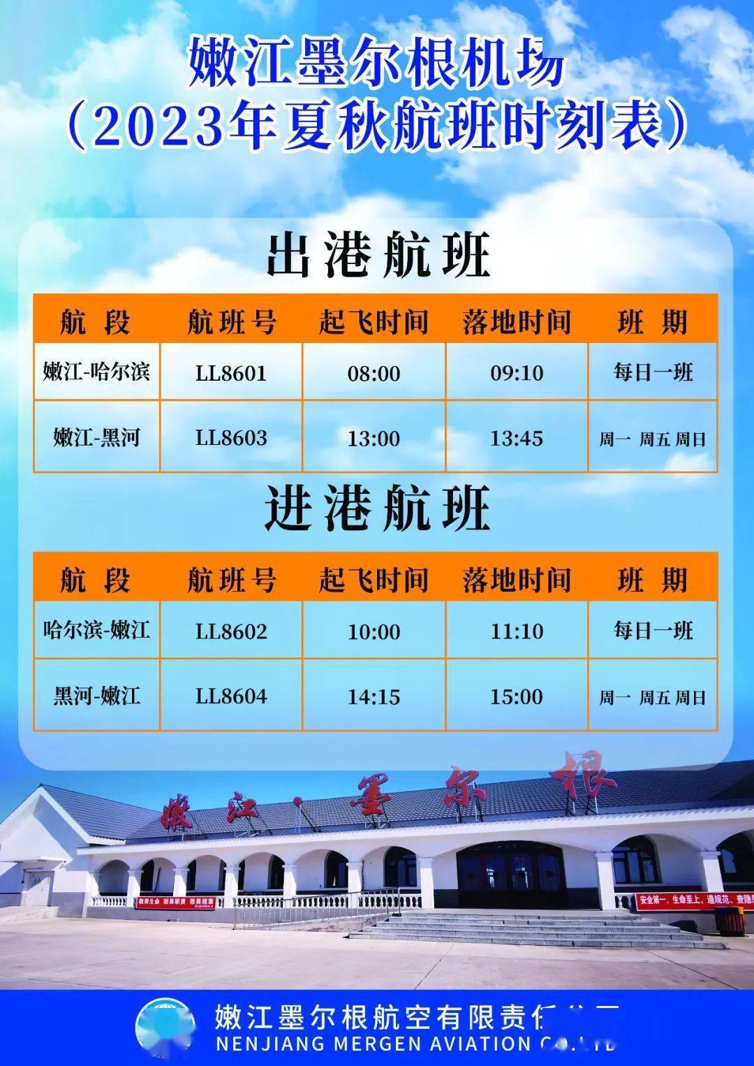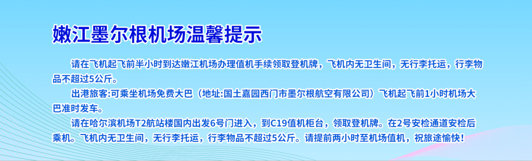 原标题:最新!嫩江、五大连池机场航班时刻表更新