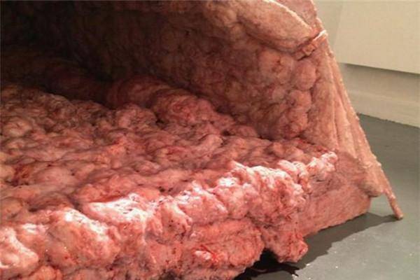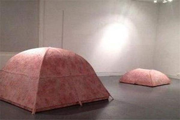 这是美国一个设计师设计,任何人看到它的外表都会非常嫌弃,主要也是设计的太过逼真了,拉上拉链的话,外观可能还能接受,但是要是打开内部就像是一个猪内脏结构,你能够看到鲜红的猪肥肉和猪的大肠等等,设计师好像还不太满意,还往帐篷里面撒了一些血,看起来虽然更加真实了,也更让人恶心了,这么做的原因是为了让人们更直观的见识内脏,不得不说实在重口。