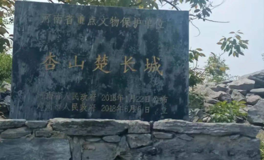 在“楚长城”一角,立了一块“杏山楚长城”石碑,碑上注明是2018年6月6日邓州市人民政府立下,这应该是官方给“邓州楚长城”印发的最好名片。读石碑后面的简介,才充分了解了邓州楚长城是战国时期楚国为防御秦国的进攻而修建的、呈带状密集型分布,是整体相连的、庞大的战略性军事防御设施。它分为两大方城,南北坐向,南城较大,长约6公里,宽约3公里,跨谷越峰,气势恢弘;北城长约1.5公里,宽约2.5公里。两城之间有城墙南北相牵,构成东西防线。只可惜碑文中记载的“楚长城”险关要塞上的“石砌兵寨、瞭望台、照明台”已经不见,13年前我们第一次来观瞻时还能看到的2间石屋也不见踪影,只剩下寨墙依然保存较好,“楚长城”整体体系得到保留,成为邓州市最大的地面文物建筑。