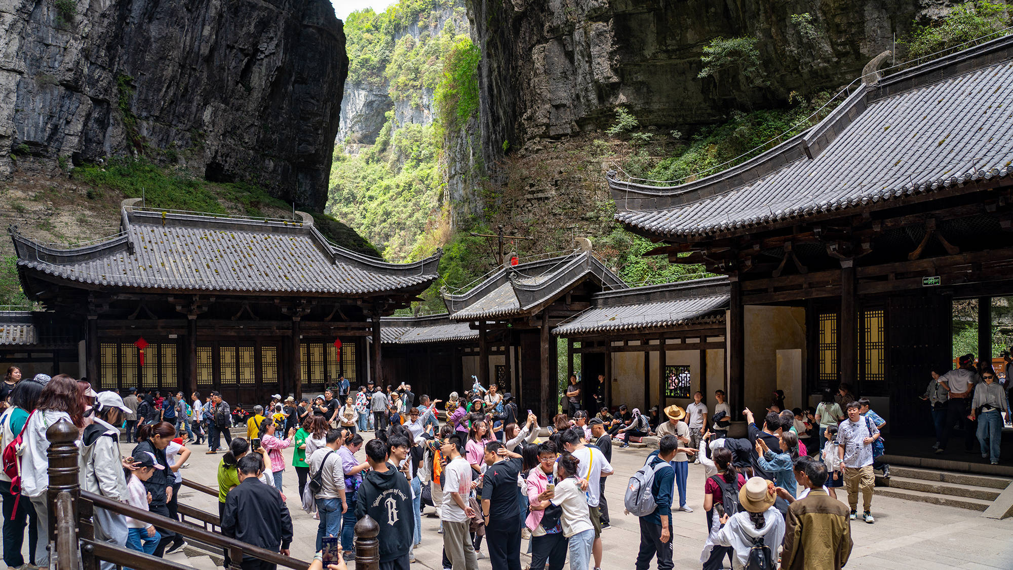 不过,重庆5A景区“人气王”不在主城而在区县。作为重庆旅游的名片,武隆喀斯特旅游区接待游客35.21万人次,接待人数位列5A景区榜首,妥妥的人气冠军!除了天生三桥、仙女山、芙蓉洞等主要景点,其大型实景演出《印象武隆》更是场场爆满、座无虚席,接待人数创新高。