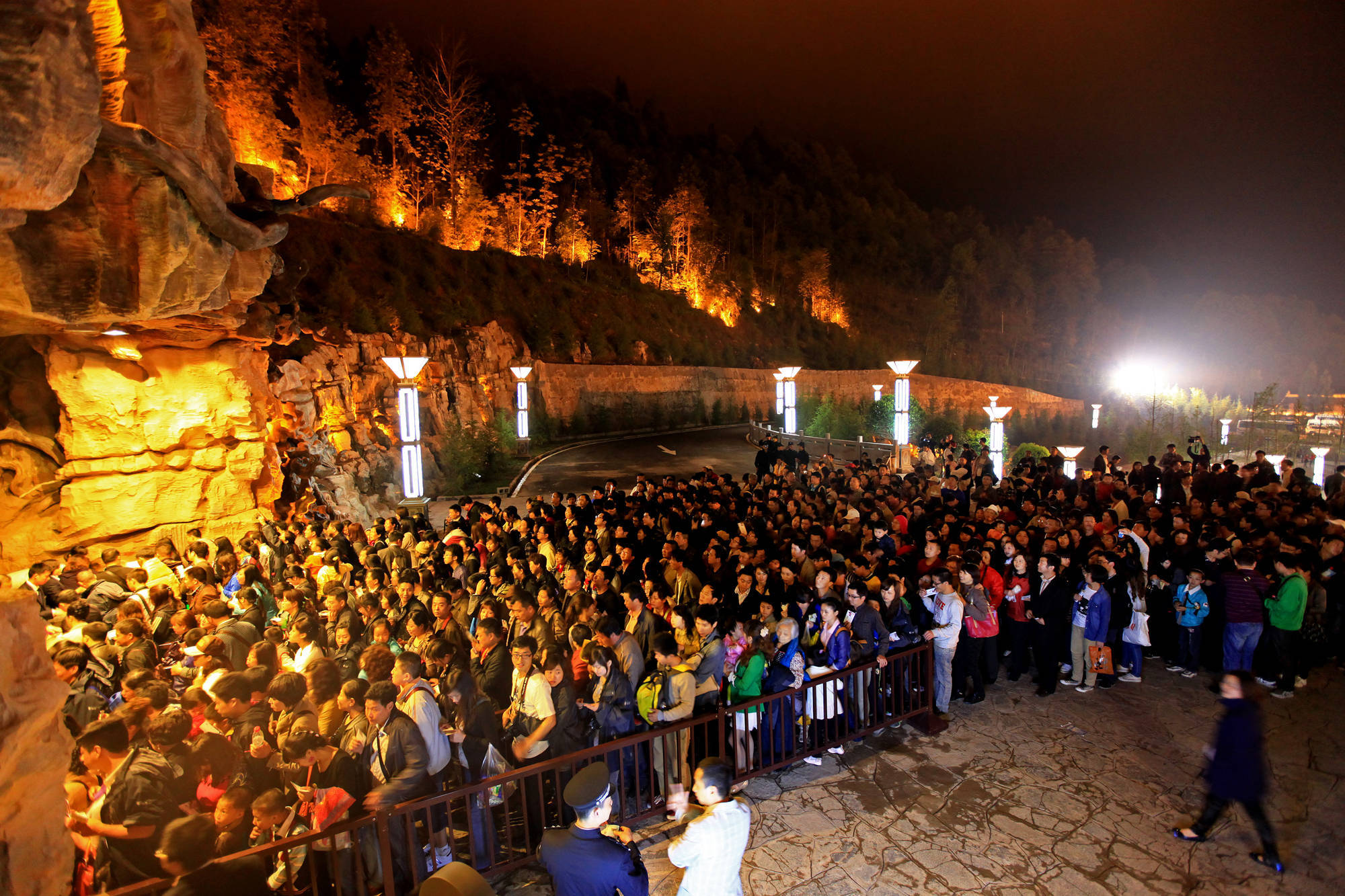“五一”期间,大型山水实景演出《印象武隆》吸引了全国各地的游客朋友前来观看,川江号子的千古绝唱给游客们留下了深刻的印象。
