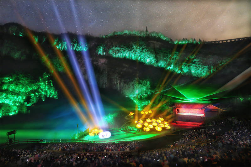 璀璨夺目、风情万种的特色灯光效果也是《印象武隆》演出最大的亮点之一,将3D激光、4000多个光影和“川江号子”完美结合。
