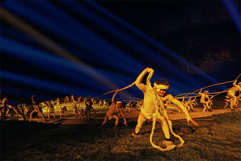 每天晚上7点半,演出剧场的工作人员全力保障游客按时有序入场。8点整,演出正式开始,演员们惟妙惟肖的表演与炫彩生动的灯光舞美完美融合,既是一场视觉盛宴,又是一场灵魂撼动,营造出时而高山流水、时而群星璀璨、时而漫天雪飞、时而春和景明的舞美效果,给观众深深的心灵震撼。