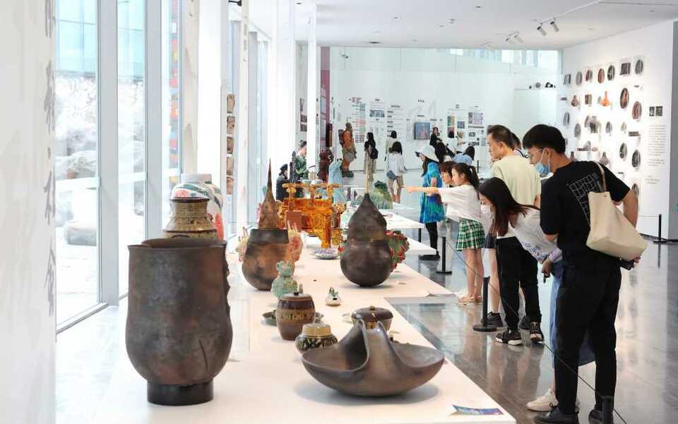 5月2日,在位于西部(重庆)科学城虎溪街道的四川美术学院美术馆,市民和游客在观展。特约摄影 孙凯芳
