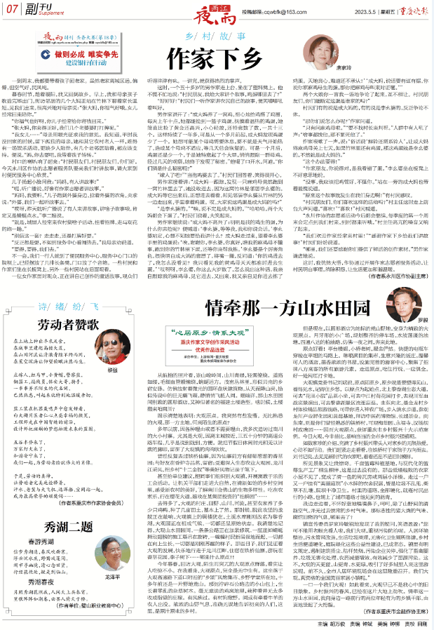 曾经反复去过铁桥仙寨,因为仙寨前方有郁郁葱葱的香草园;与好友在香炉寺品茗、留宿;受邀深入生态农业大观园、龙川江采风,把乡村“十二金钗”等美好风物记录于笔下。