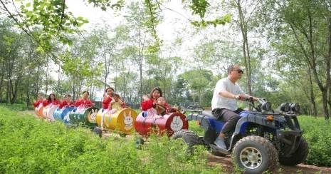 “嘟……嘟……”这是小火车来了,乘坐着油桶改造的“火车”,无论是大朋友还是小朋友都兴奋起来;