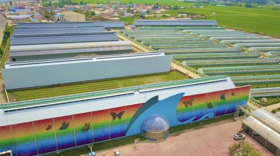 金丰现代农业产业园以设施农业、生态农业为依托,打造实用型现代农业科技示范园区。园区建有100栋新型节能日光温室及连栋大棚、育苗组培室、植物氧园、阳光餐厅等设施。用于果蔬栽培的GRS-高效日光温室,是自主研发设计的高科技温室产品,具有智能蓄热、保温、优化环境光照,太阳能转化功效高的特点。