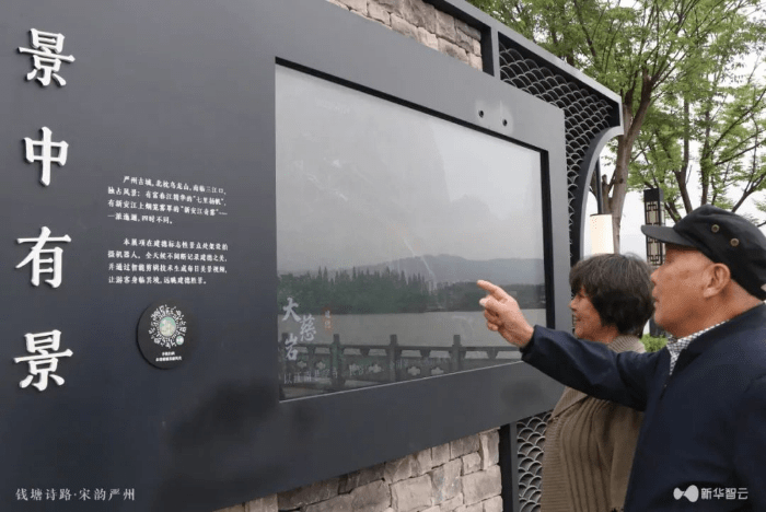 除了四处飞花令,还有三处室外文化点,借助诗词“串”起全域旅游,景中有景、一人园、姚坞石碑……游客循着“严州诗路”,领略严州秀美的山水风光。